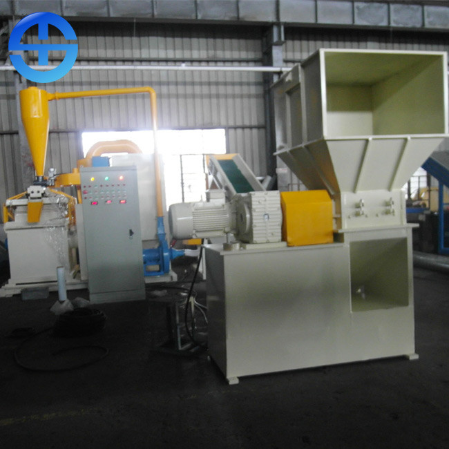 Das Material ist Zufuhr in den ersten Reißwolf, die die Kabel (φ≤25mm) in Stücke der Länge 10-20mm zerreißen, dann diese Stücke in zweite Zerkleinerungsmaschine übermitteln, zerreißt der zweite Reißwolf (10 PC, die Blätter, 4 PC reparierte Blätter drehen) die Kabel in Plastikstücke der Länge 3-5mm oder verkupfert Stücke. Schließlich unter der Kraft des Stoßes des Luftstromes und des Vibrierens von Schirm, bewegen die Stücke vorwärts ein der Schirm, das unterschiedliche Kupfer vom Plastik und versenden sie durch Lufteinlass des vibrierenden Sogs.