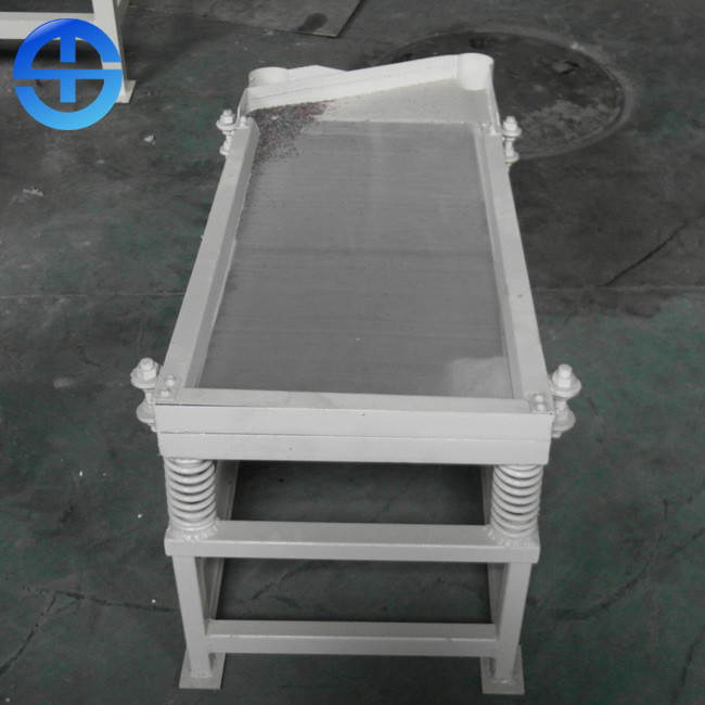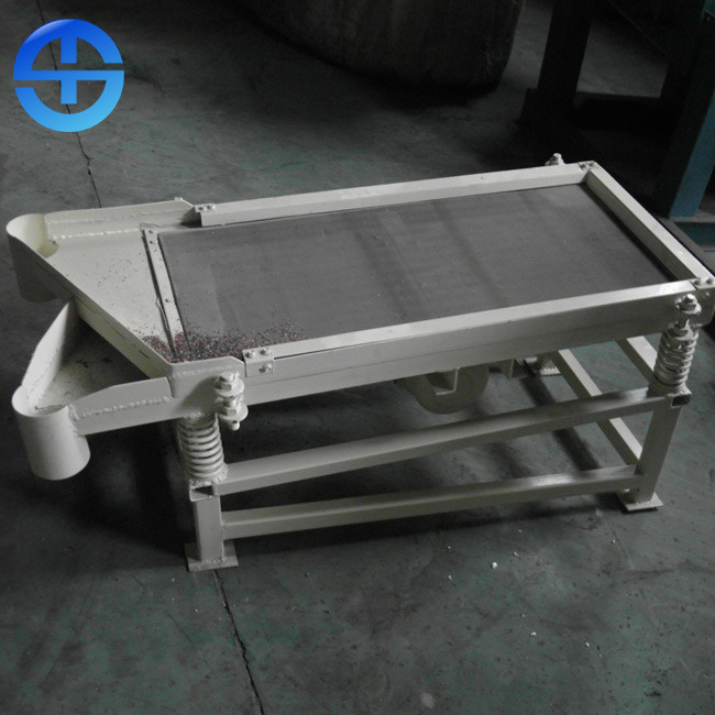 Vibrierende Tabellenmaschine ist in der Chemikalie, in der Nahrung, in der Medizin und in anderen Industrien sehr praktisch. Sie hat hohe aussortierende Genauigkeit, große Aufbereitungskapazität, einfache Struktur, niedrigen Energieverbrauch, lärmarme, lange Nutzungsdauer, gute Dichtung, wenig Staubspillage und bequeme Wartung. Arbeiten Sie häufig mit anderer mechanischer Ausrüstung, wie Förderer, Hebemaschine, Zerkleinerungsmaschine, etc. zusammen, um die Selbsttätigkeit des ganzen Fließbands abzuschließen. Die lineare Pulversiebmaschine benutzt den Erschütterungsmotor als die Erschütterungsquelle, damit das Material oben auf den Schirm geworfen wird und vorwärts in eine Gerade sich bewegt. Das Material kommt gleichmäßig den Zufuhreinlaß der Siebmaschine von der Zufuhr und erzeugt einige Spezifikationen der oberen und untereren Schirmmaterialien durch den mehrschichtigen Schirm, die von ihren jeweiligen Ausgängen entladen werden. Weil die materielle Flugbahn lineare Bewegung ist, wird es linearen Schirm oder linearen vibrierenden Schirm genannt.