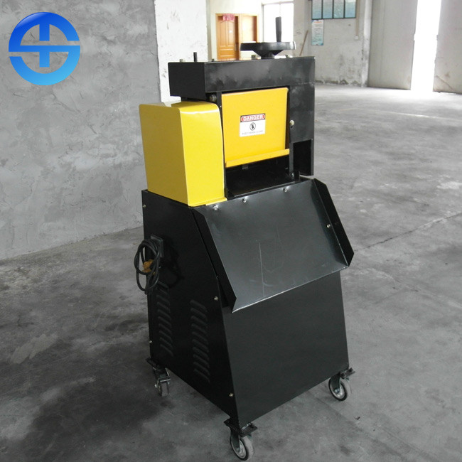 Abisoliermaschine des kupfernen Kabels hat breiten Einsatzbereich und lange Nutzungsdauer. Sie kann allen Arten Kabel, Hochspannungskabel, Lichtleiterkabel und Drähte abziehen. Sie kann mehr als 2mm einzelnen Draht, umhüllten Flachdraht, Stahldraht, etc. auf dem rollenden Rad drücken. Der Elektromotor wird mit 4 dem Dreiphasen × 4 ausgerüstet. Das Getriebe kann auf vier Gänge justiert werden, die Geschwindigkeit ist passend für Ihren Produktionsbedarf. (Anmerkung: bei der Verschiebung, drehen Sie einen Griff zur neutralen Person zuerst. Dann gehen Drehung bis eine andere und dann ich durch Analogie. (Streifenkabel mit Durchmesser von 2-85mm).