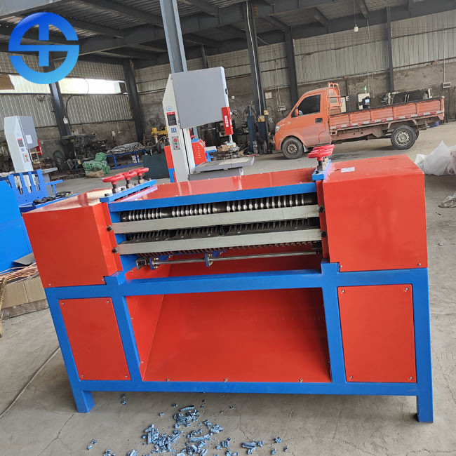 Klimaanlagenheizkörper werden fast ausschließlich vom Kupferrohr und von der Aluminiumflosse hergestellt. Zu aufbereiten, Wechselstrom-Heizkörper auszurangieren, soll Kupfer und Aluminium getrennt werden, um einen höheren Preis zu erhalten. Der Heizkörper, der Maschine aufbereitet, ist entworfen, um den Schrottheizkörper für die Wiederverwertung des Kupfers und des Aluminiums mit hoher Leistungsfähigkeit und stabiler Leistung abzustreifen und zu trennen. Es gibt drei Arten Blattmittelabstand: 19mm, 21mm und 25mm; das heißt kann es den Heizkörper abstreifen, wer Mittelabstand des kupfernen Rohrs 19mm, 21mm oder 25mm ist. Vor verarbeitet werden die Heizkörper mit einer Band sahen in Stücke bestimmter Breite geschnitten. Sie kann eine Schicht oder zwei Schichtheizkörper trennen. Wenn Heizkörper mehr als zwei Schichten sind, wird sie in eine Schicht geschnitten, oder zwei Schichten durch Band sahen Maschine.